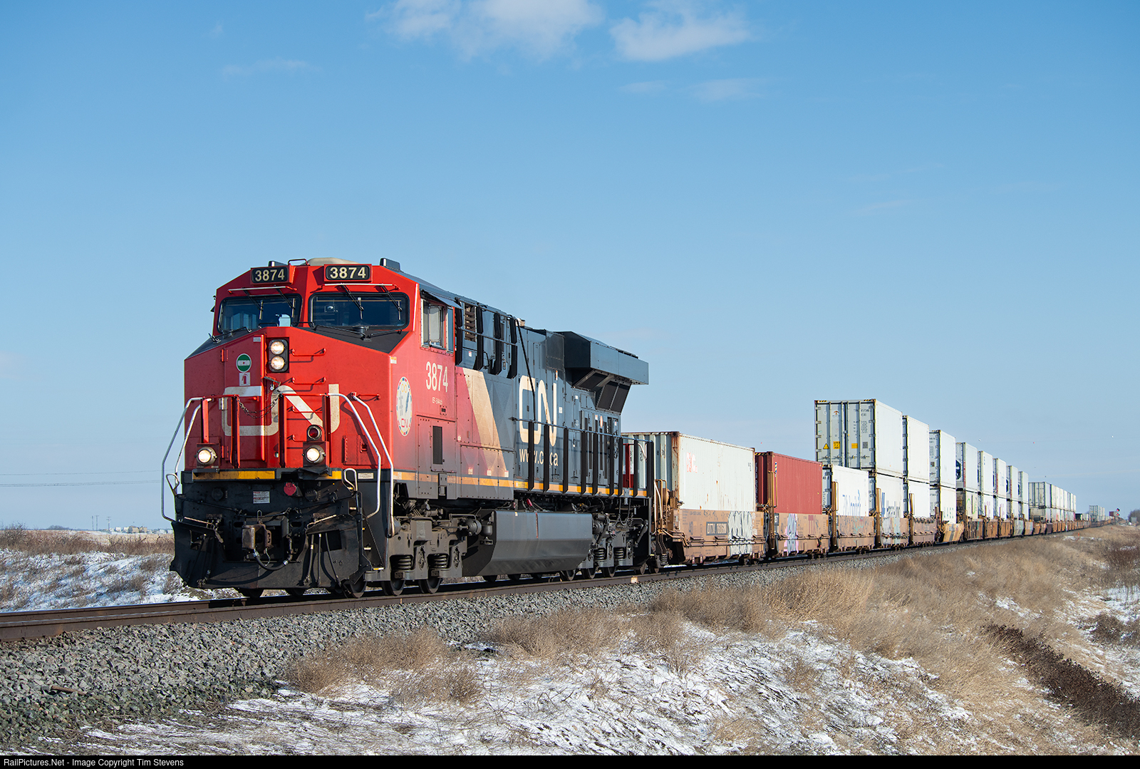 RailPictures.Net Photo: CN 3874 Canadian National Railway GE ES44AC at Bruce, Alberta, Canada by Tim Stevens
