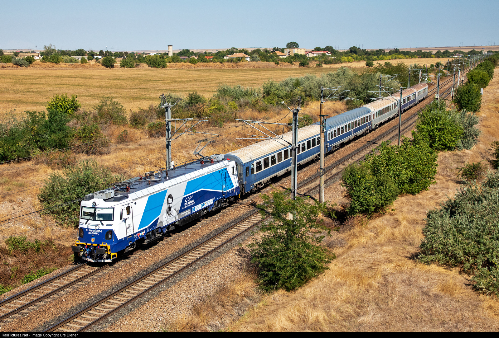 | The modernized CFR locomotive 481 003 pulls train IR 1936 from Constanta to Brasov. The locomotive, modernized in April 2025, was created by Softronic from the Electroputere LE 5100 locomotive number 41 0530, built in 1978. |