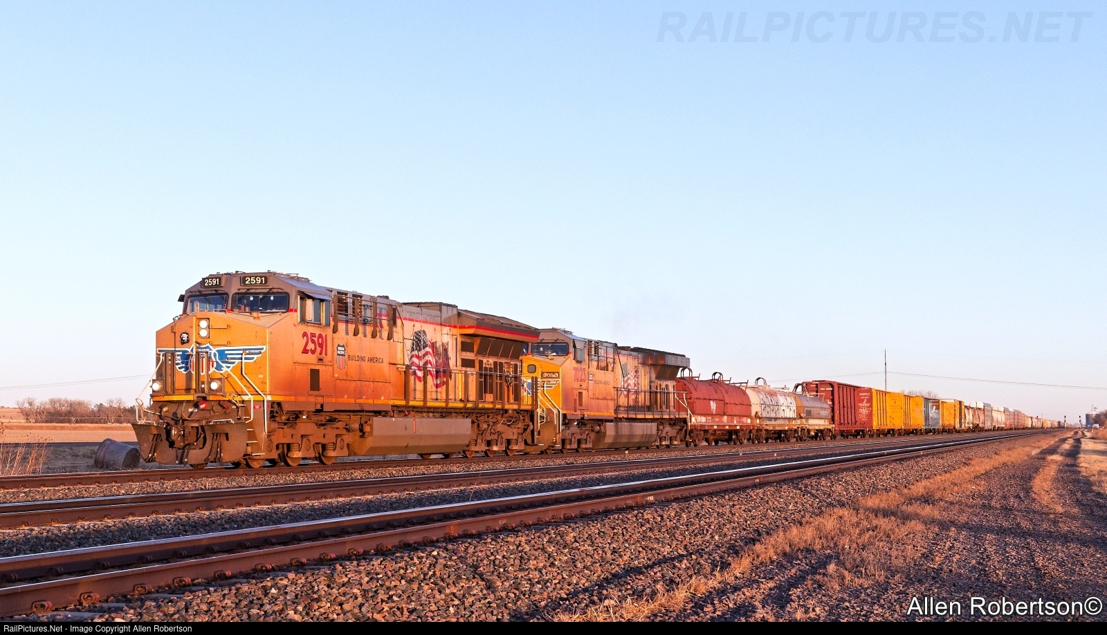 UP 2591 & 7023 power a westbound mixed freight.