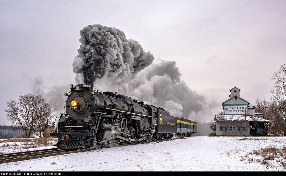 The featured locomotive is Pere Marquette Railroad N-1 Class, 2-8-4 "Berkshire" Locomotive #1225, which is owned and operated by the Owosso-based Steam Railroading Institute (SRI). The 1225 was re-lettered as C&O 2699 for a January 2026 photo shoot organized by Lerro Photography. The 1225 was re-lettered to represent the former PM N-Class Berkshires, which were renumbered when the Pere Marquette Railroad merged with the Chesapeake & Ohio in 1947.