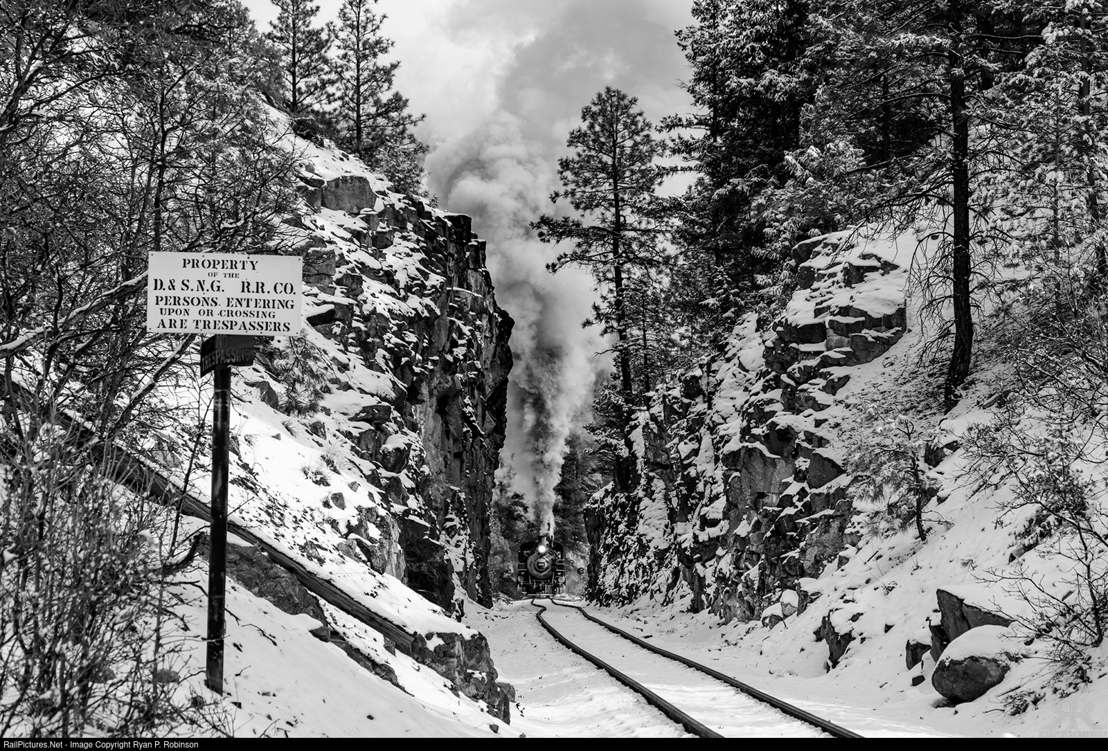 | Snow has been sparse in southwestern Colorado so far this winter. After a few inches fell the night before, Train 262 makes a pull for Rockwood. Within a few hours the snow would be gone once more. |