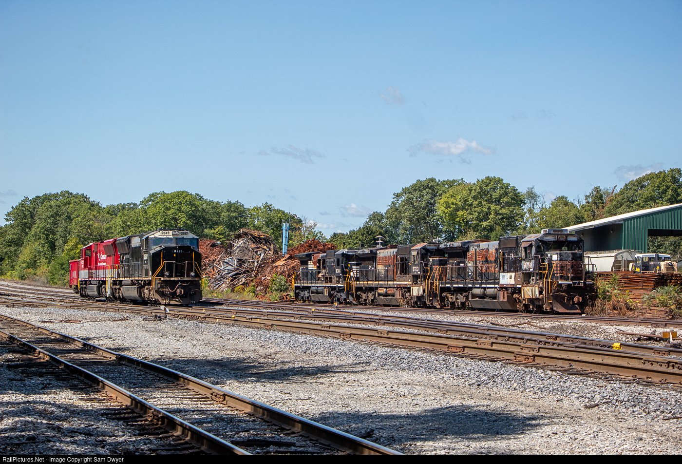 Graveyard of NS Power RJ Corman recently acquired 14 ex-NS SD70Ms with notched nose cabs, two of which ended up on their Pennsylvania Lines. Here we see two of them parked up in Cresson, PA, one of which, 2647, hadn't yet been repainted. To their right, 3 ex-NS C40-8s sit at Cresson Steel, which acquired them sometime around 2016. Despite the fact that Cresson Steel frequently deals in the scrapping of NS locomotives and locomotive components, it's been holding onto these Dash 8s for years.