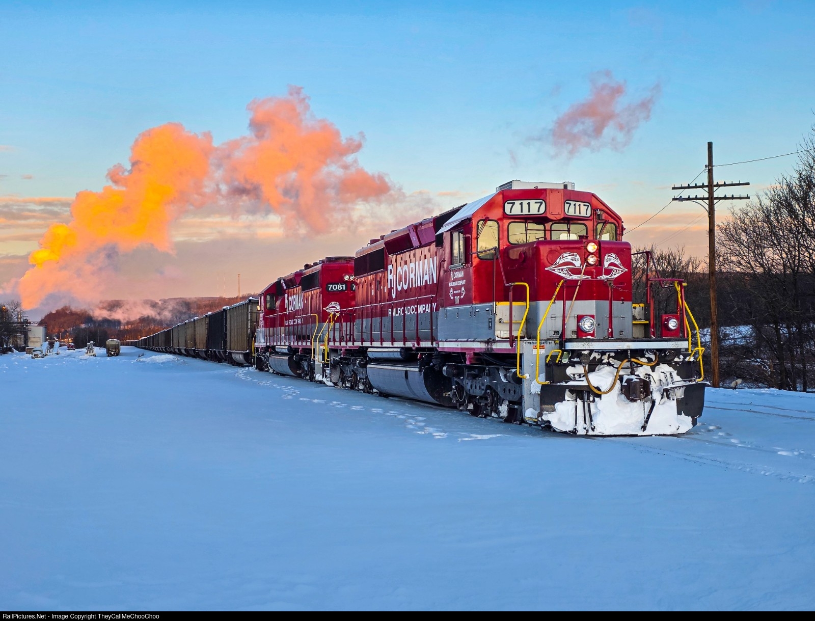 | The morning sun shines over the steam clouds from Pennsylvania Grain Processing as an empty coal train rests in two feet of snow awaiting its assignment for another load of PA black diamonds. |