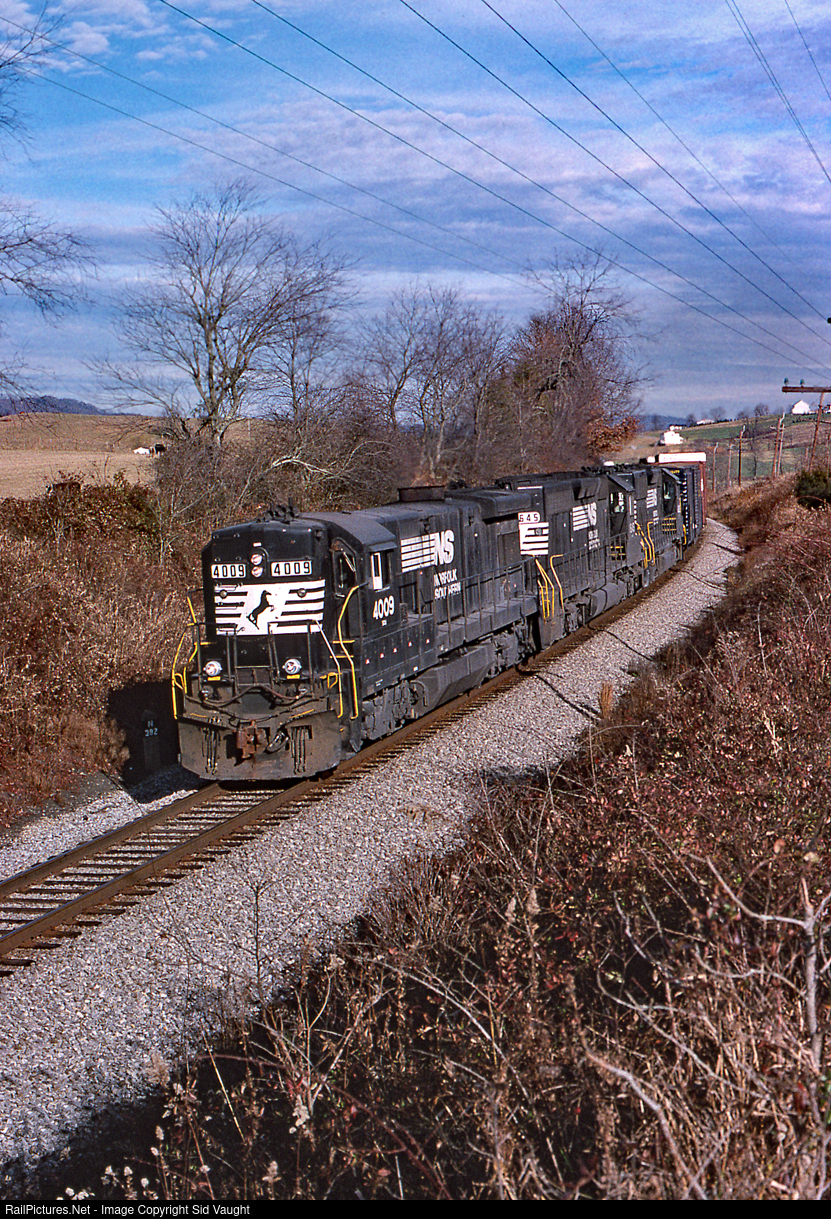 | A nice looking former Southern unit is in charge of this westbound merchandise which has just passed to old west end of the siding on its way to a crew change at Bristol. Nowadays the siding extension runs to the left of where the locomotive is. |
