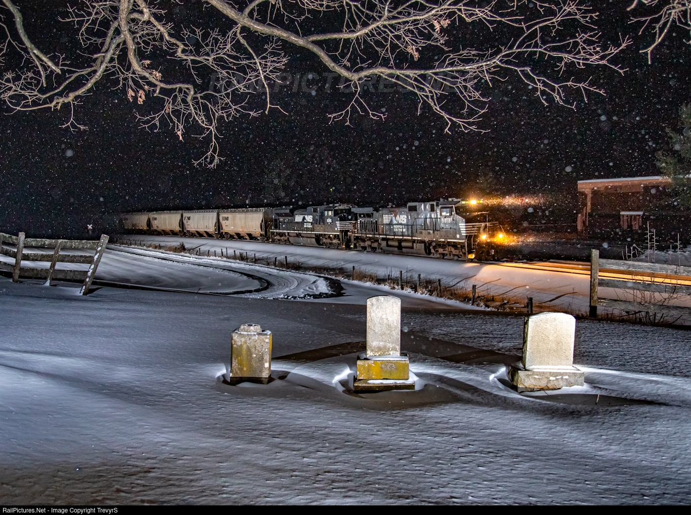 NS 41N is on its knees battling icy conditions as they pass Shawsville, VA. The tail end of a winter storm drops a few last flurries before leaving the area.