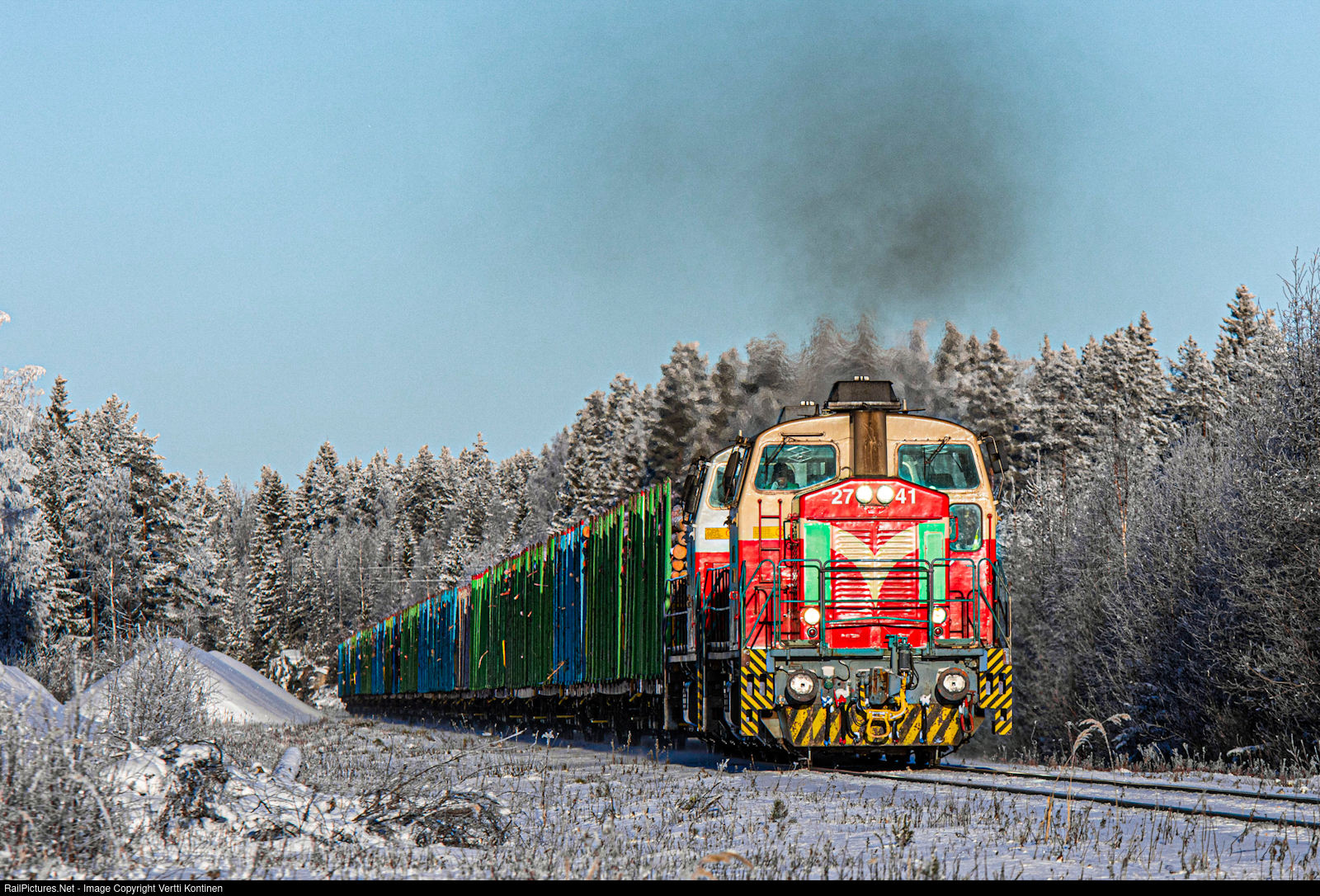 | A VR freight train from Kannonkoski to Jyväskylä seen climbing the grade near the remains of the now dismantled Sapra station |