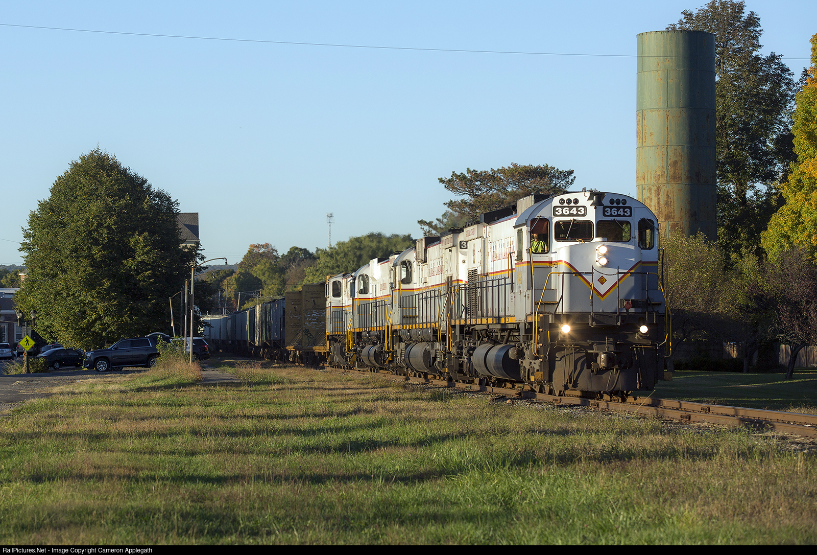 | The Delaware-Lackawanna PO-74 job cruises into East Stroudsburg behind a handful of awesome MLW power past the old Phoebe Snow station with freight in tow bound for interchange with the NS at Portland, PA. Lead unit 3643 was purchased from the CP Rail in 1999 and is still operational to this day, thanks to the good people at the South Side shops in Scranton, PA, overseen by Alco wizard Don Colangelo.
