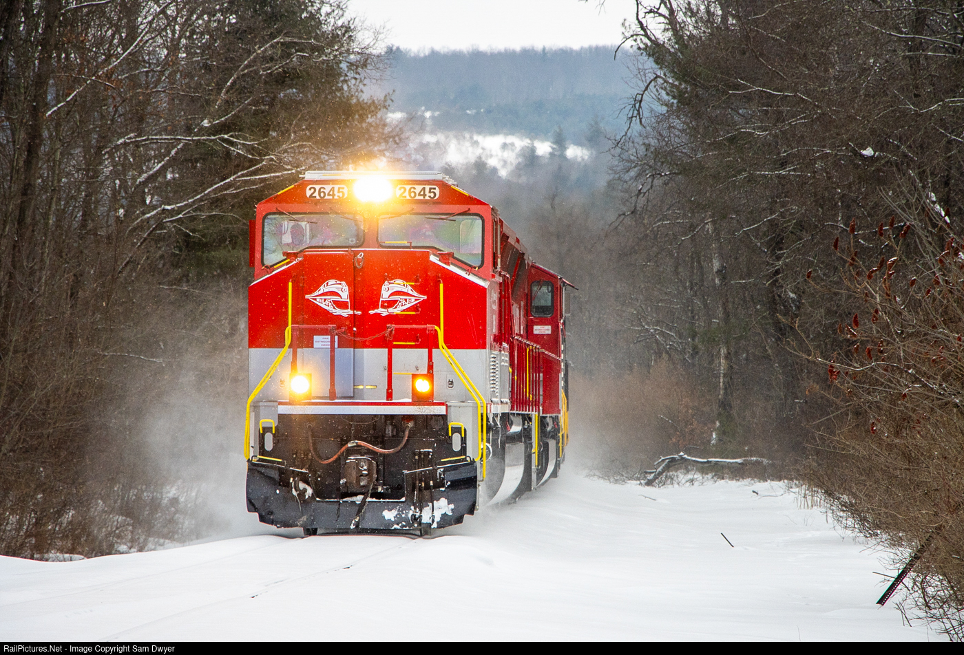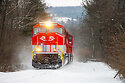 The Pennsylvania Tundra R.J. Corman Pennsylvania Lines sees quite a bit of action this time of year, with nearly weekly grain trains coming off Norfolk Southern in Cresson, PA, bound for Clearfield, PA. Today, the railroad's two relatively new (to them) SD70Ms kick up some freshly-fallen snow in Newburg.