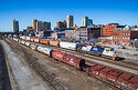 CSX's Operation Lifesaver SD70MAC #4568 leads train X502 northbound through downtown Birmingham, AL.