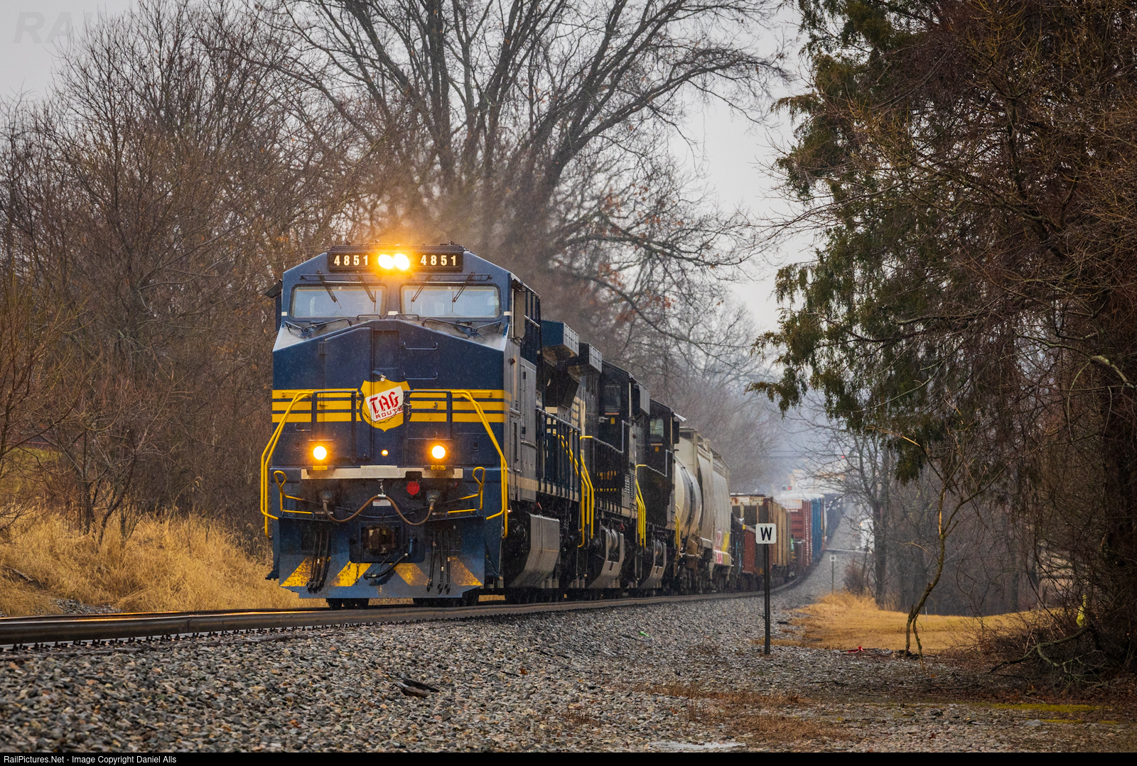 | The Tennessee Alabama and Georgia heritage unit rolls through a dip in the tracks in Meadowview, VA with NS 127. |