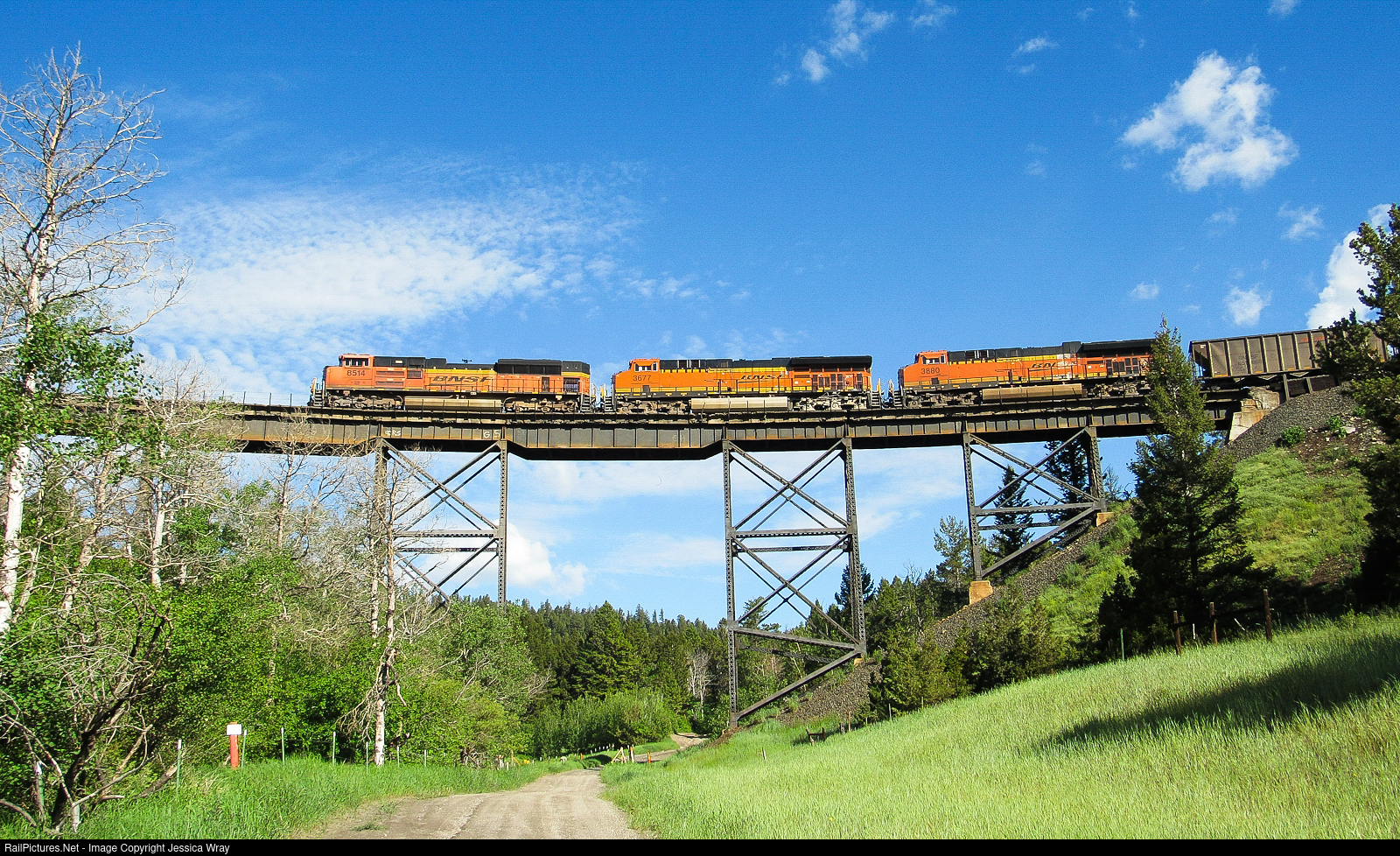 Today on 'weird choices by the power desk': putting three locomotives originally built for fast intermodal service on a coal drag. BNSF 8514 is one of 20 "SD70ACe-P4" testbeds built by EMD as their answer to the GE ES44C4, sporting a B1-1B arrangement (similar to the ES44C4's A1A-A1A arrangement, except the non-powered axles are next to the fuel tank, as opposed to the middle of the truck). They never really caught on, unlike their GE counterparts, but the units remain in service to this day. For some reason, BNSF's power desk decided that the best option for this train would be to pair up one of these oddballs with two ET44C4s... which also sport only four traction motors per unit! Needless to say, this train was not performing very well climbing Mullan Pass - also considering yet another ET44C4 was shoving on the rear!