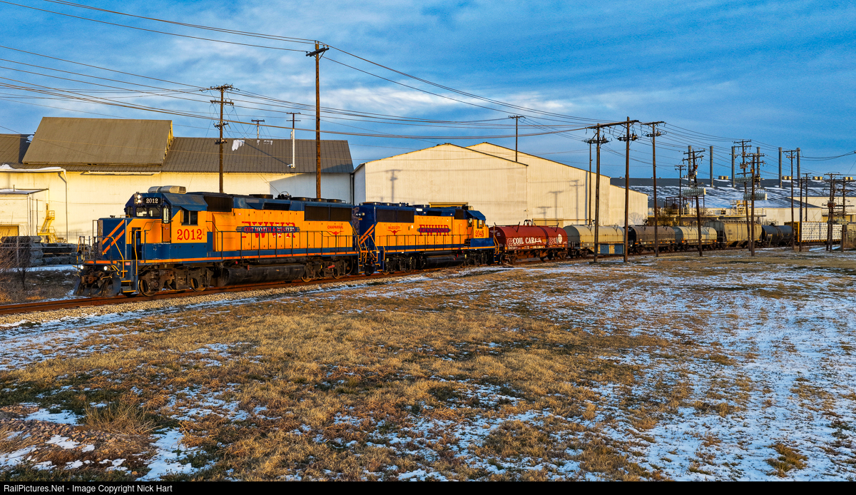 FWWR 2012 and 2045 find some golden hour sunlight as they prepare to make deliveries to a few local industries outside of Hodge Yard.