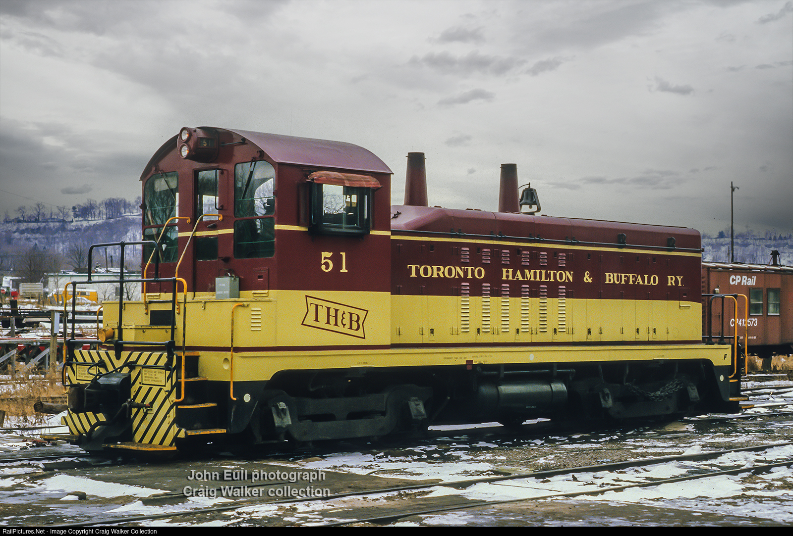 Toronto Hamilton & Buffalo Railway owned four GMDD NW2 switchers, numbered 51-54. TH&B 51 was found in Hamilton in late 1983.