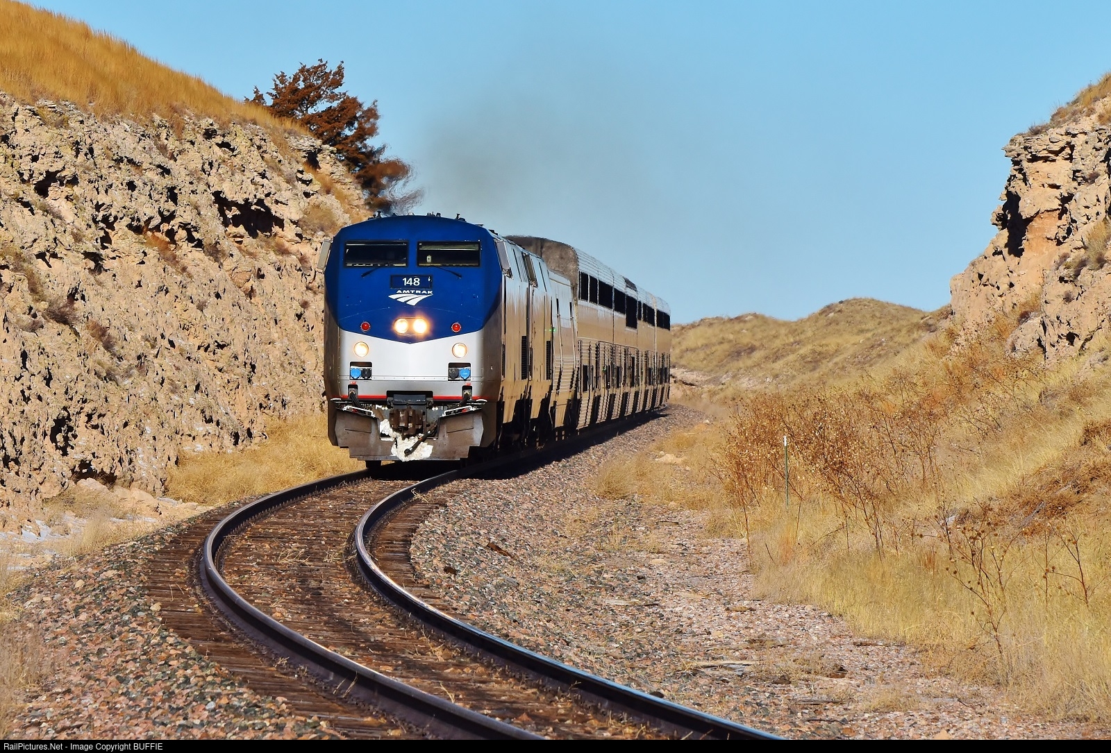 RailPictures.Net Photo: AMTK 148 Amtrak GE P42DC at Akron, Colorado by BUFFIE