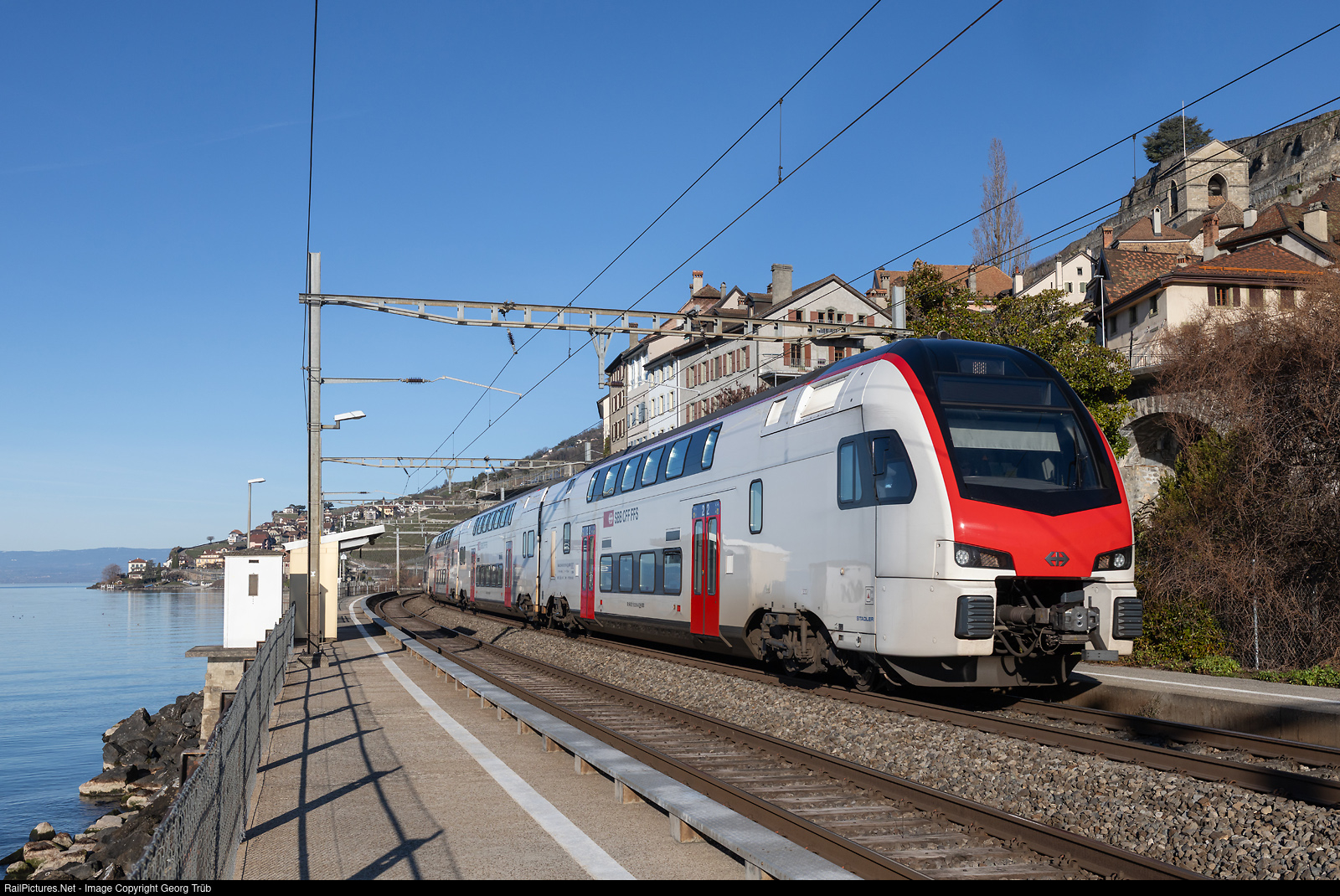 | "IRD" (Interregio Doubledeck train) RABe 512 # 016 is running through St-Saphorin as RE33 service 18409 from Annemasse via Geneva-Lausanne-Montreux to St-Maurice. |