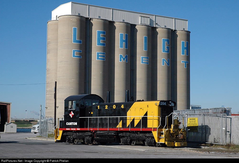 The state of Maryland owned Canton Railroad switches the Lehigh Cement elevator at the Port of Baltimore. Fort McHenry can be seen in the background across the harbor.