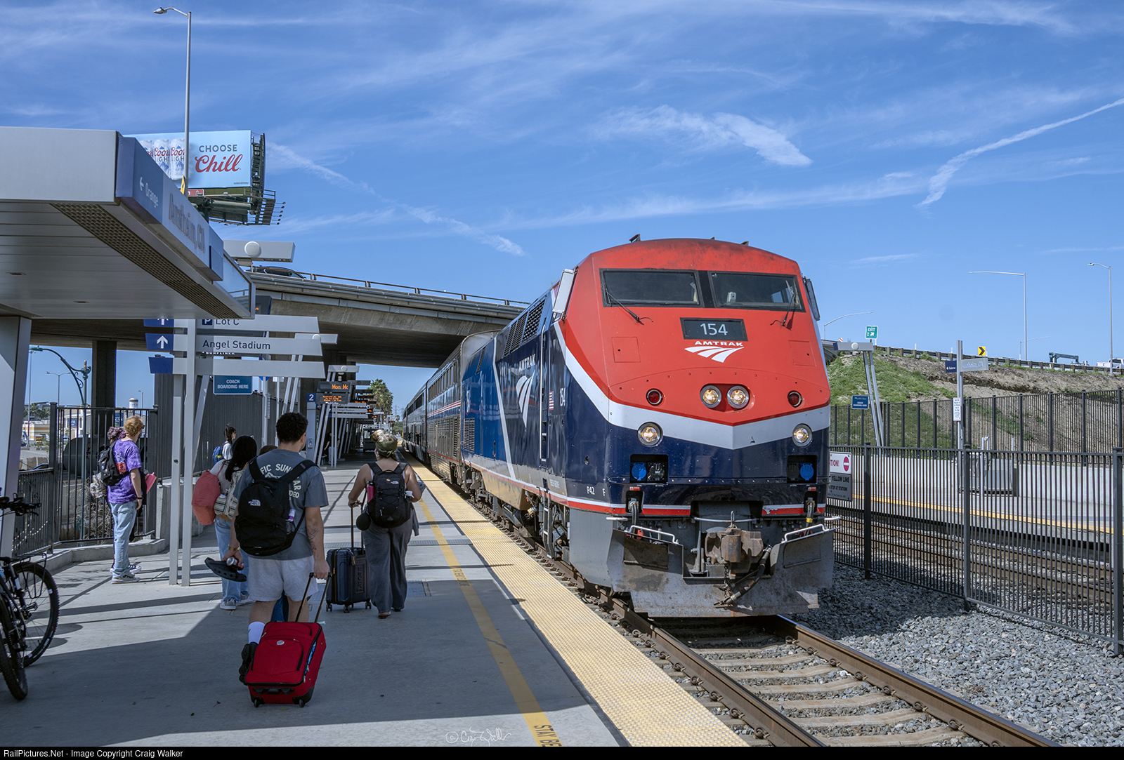 While waiting for a friend to arrive from San Diego, I was surprised by the arrival of Pacific Surfliner 572 … not because the train was unexpected, of course, but because it was pulled by a P42DC, not the usual power one finds on the Surfliners. But they do show up occasionally, however this P42DC is in the Phase VII scheme, which is the first of its kind that I've seen on these Los Angeles to San Diego trains. It would have been even more exciting if P42C cab car 9700 (the former P42DC 184), also in Phase VII paint, which spends a lot of time sitting in Amtrak's Redondo Junction facility in Los Angeles, had been attached to the train's rear, as it was actually used on a train the other day. But now I was just getting greedy, and I wasn't complaining about P42DC 154 making an appearance on this train.