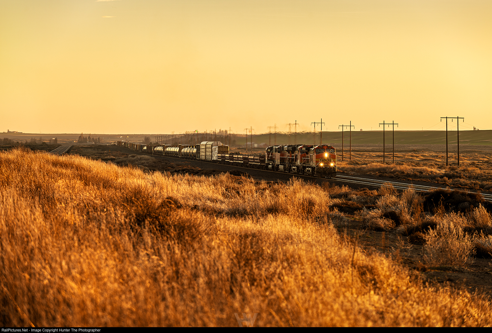| Aureate Atmosphere | Late afternoon sunlight casts a golden glow across the Palouse near Tokio, WA as an eastbound manifest freight train makes its way from Pasco to Spokane on a warm Saturday, March 7, 2026. |