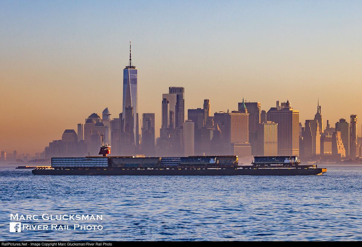 On Tuesday, March 10, 2026, NYNJ Rail, and Metropolitan Transportation Authority - MTA NYCT Subway coordinated the delivery of four Wabtec WAB6HYB/R-255 locomotives (HL0018-HL0021) from Greenville, New Jersey to Brooklyn, New York. The locomotive was loaded on the NYNJ 200 barge and powered across New York Harbor by McAllister Towing's 'Marjorie McAllister'. Because this kind of locomotive is not designed to work with standard consists, it is shipped on a flat car, and will be moved to the track by crane. While the barge is crossing New York Harbor, there is always a great background of buildings, monuments, and other boats and ships.