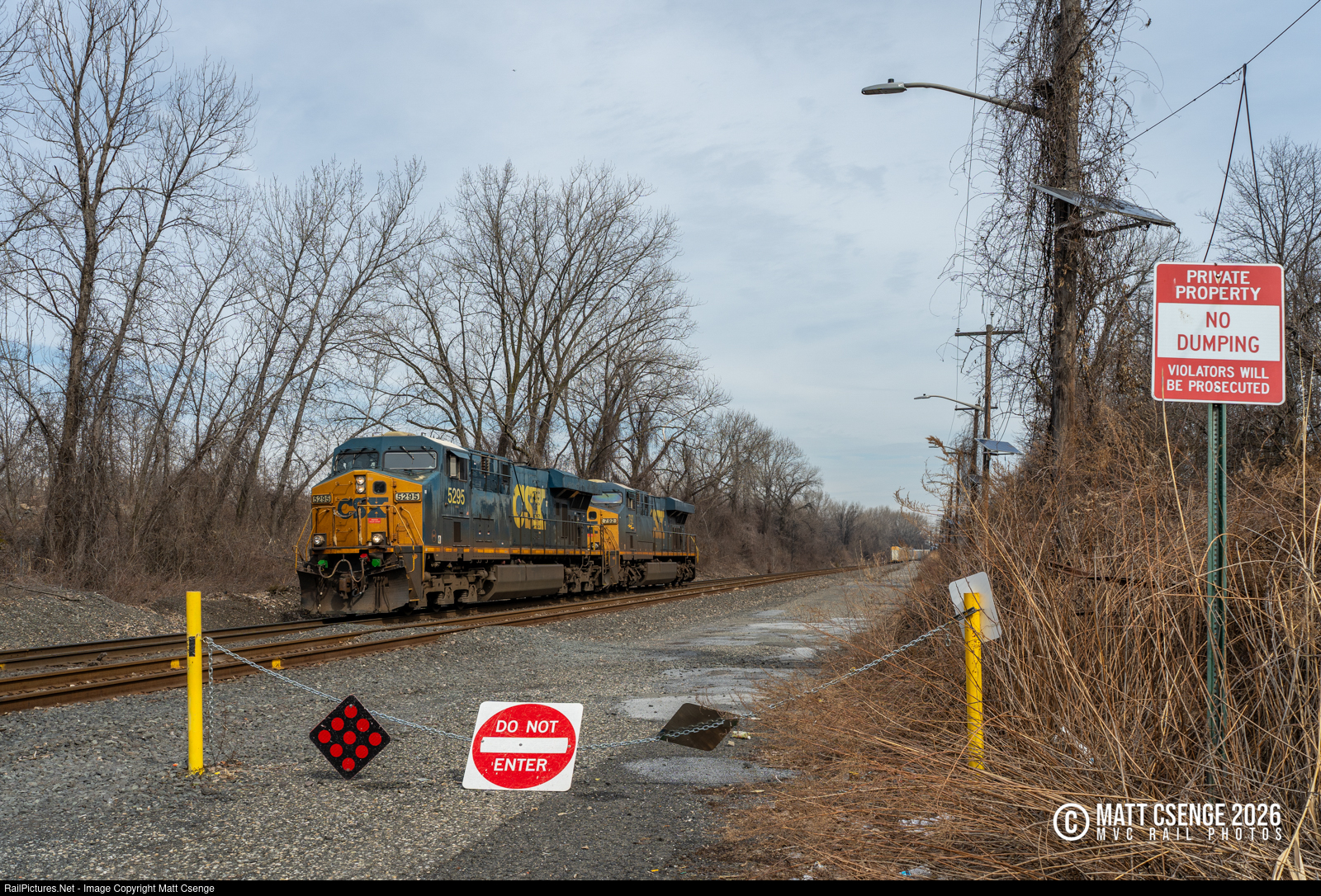 A pair of light CSX locomotives - 5295 and 792 - are seen running elephant-style down the Conrail National Docks Secondary, approaching the grade crossing at Chapel Ave. I would later catch these two again running north at CP Marion, still running light after having looped through much of the shared assets territory in North Jersey! |