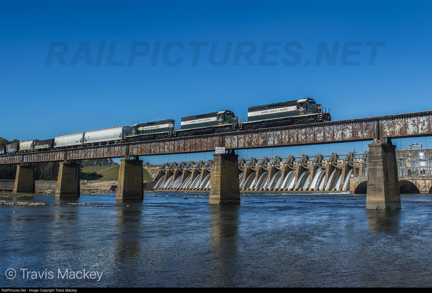 Aberdeen, Carolina & Western train 300 crossing the Pee Dee River at the Hydro Dam