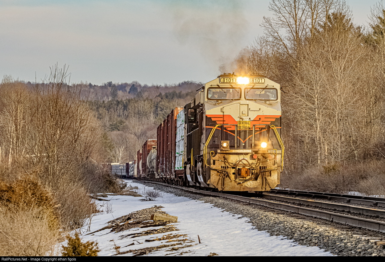 | NS 8101, the Central of Georgia heritage unit, leads 30T south through Delanson |