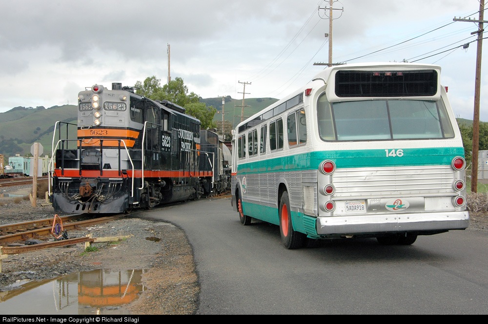 A couple of beautifully restored classic GM's. A 1955 vintage EMD GP9 meets up with David Chen's restored 1961 GMC transit bus.