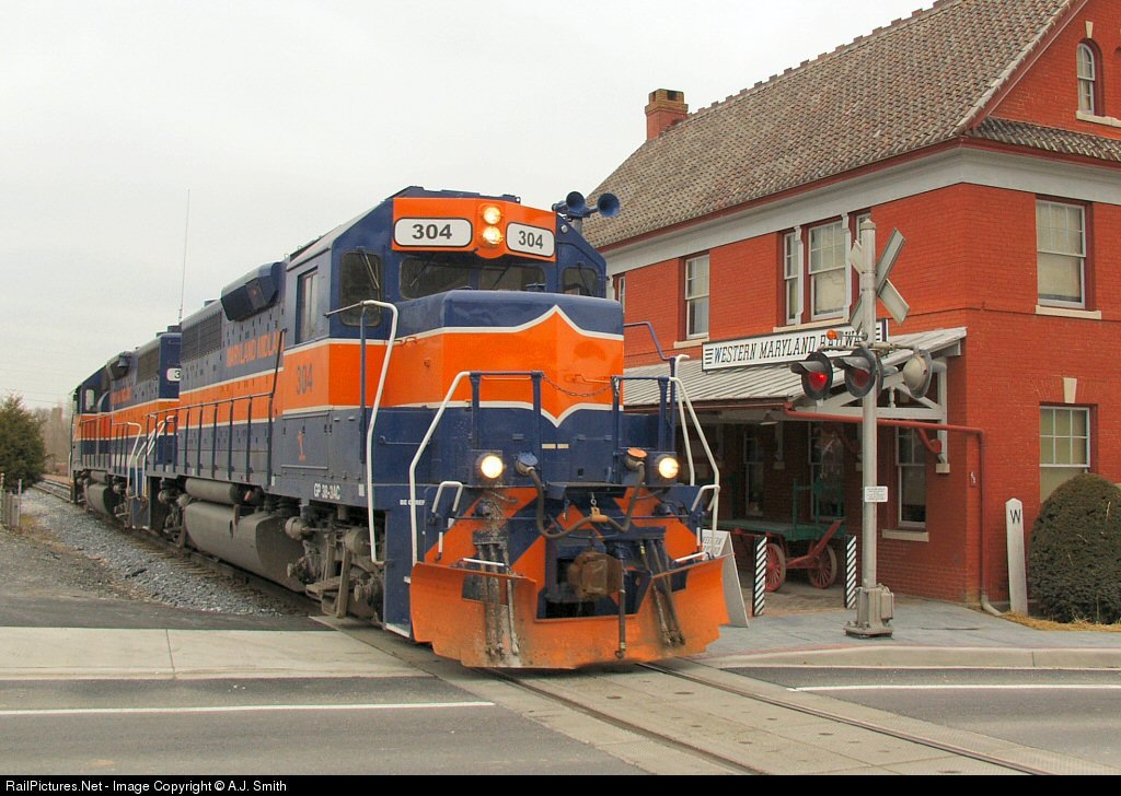RailPictures.Net Photo: MMID 304 Maryland Midland GP38-3AC at Union Bridge, Maryland by A.J. Smith