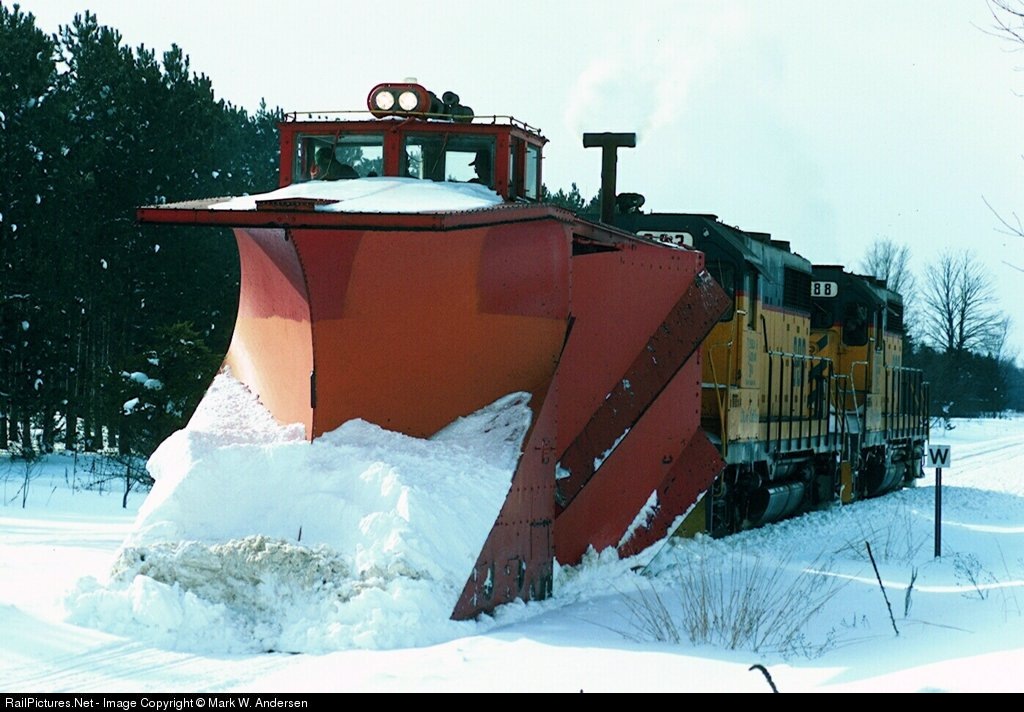 The crew takes a coffee break while operating a special plow train from Cadillac to Petoskey on ex PRR rails of the Tuscola and Saginaw Bay Ry. and Saginaw Bay RY.