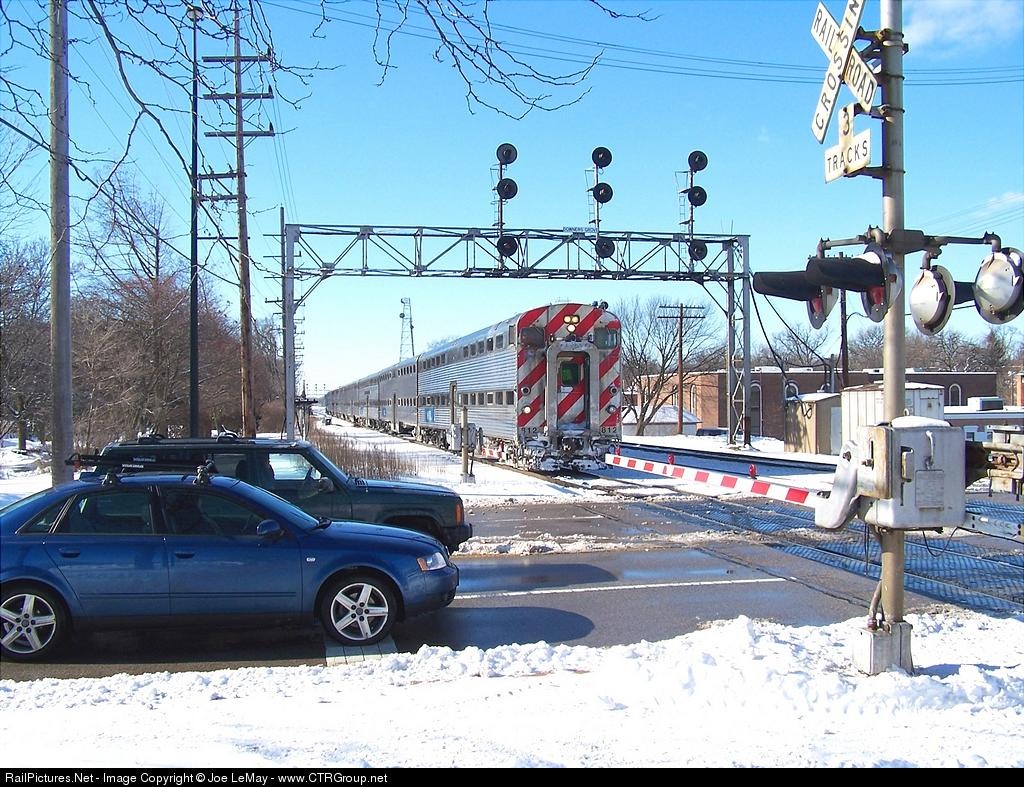 Inbound Metra slows down at crossing and gives a long long short long due to a gate malfunction. The gates would go down, bell dinging, then the bell would stop, and about 5 mins later they would go back up for about 1 minute, and repeat the process.