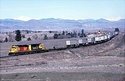 Santa Fe ran intermodal service between western cities. Train had left Big Lift south of Denver with 19 loads and one empty headed for La Junta, CO, where other trains swapped cars.