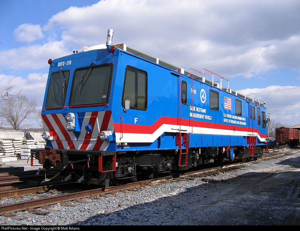 FRA/USDOT Guage Testing car T-18 is seen idling in Maryland Midland's Union Bridge Yard on a sunny Wednesday.