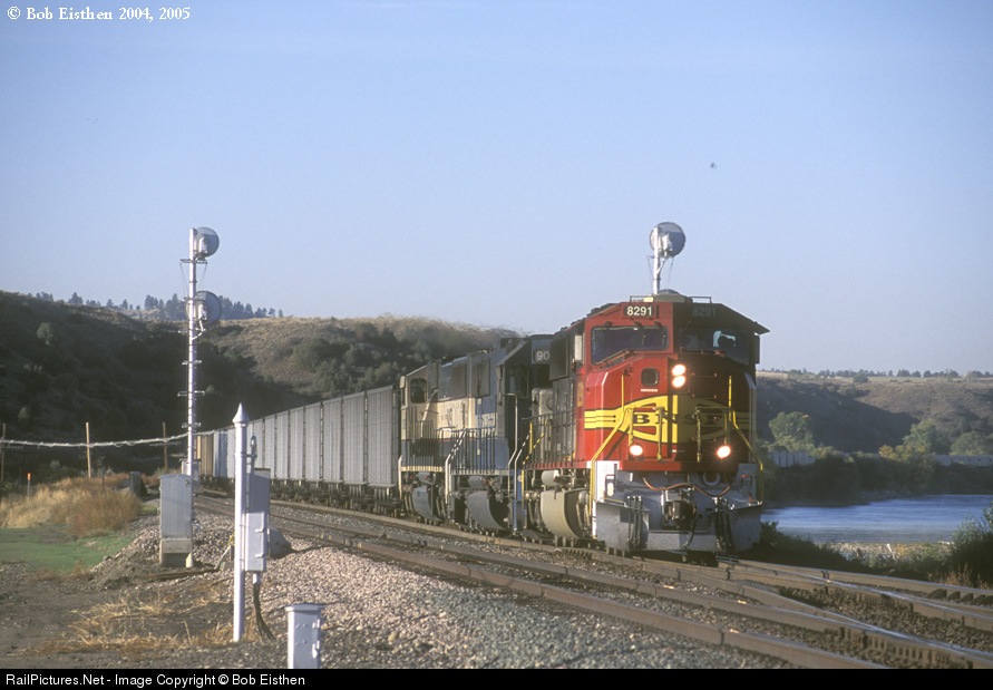 RailPictures.Net Photo: BNSF 8291 BNSF Railway EMD SD75M at Huntley, Montana by Bob Eisthen