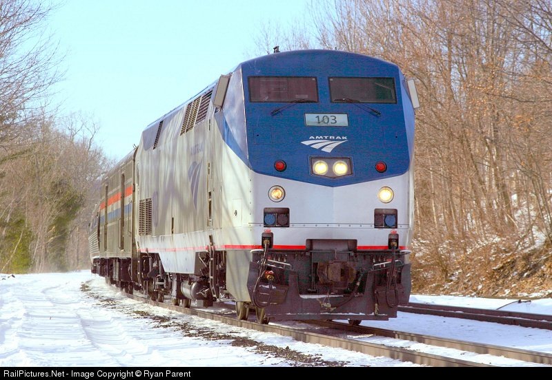 RailPictures.Net Photo: 103 Amtrak GE P42DC at Westfield, Massachusetts by Ryan Parent
