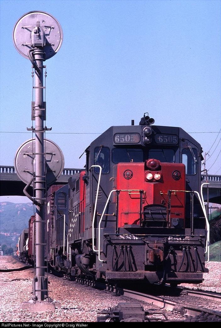 | SSW GP35 6505 (ex-765) passes the block signals in Pomona, CA with an eastbound freight on March 25, 1978. |