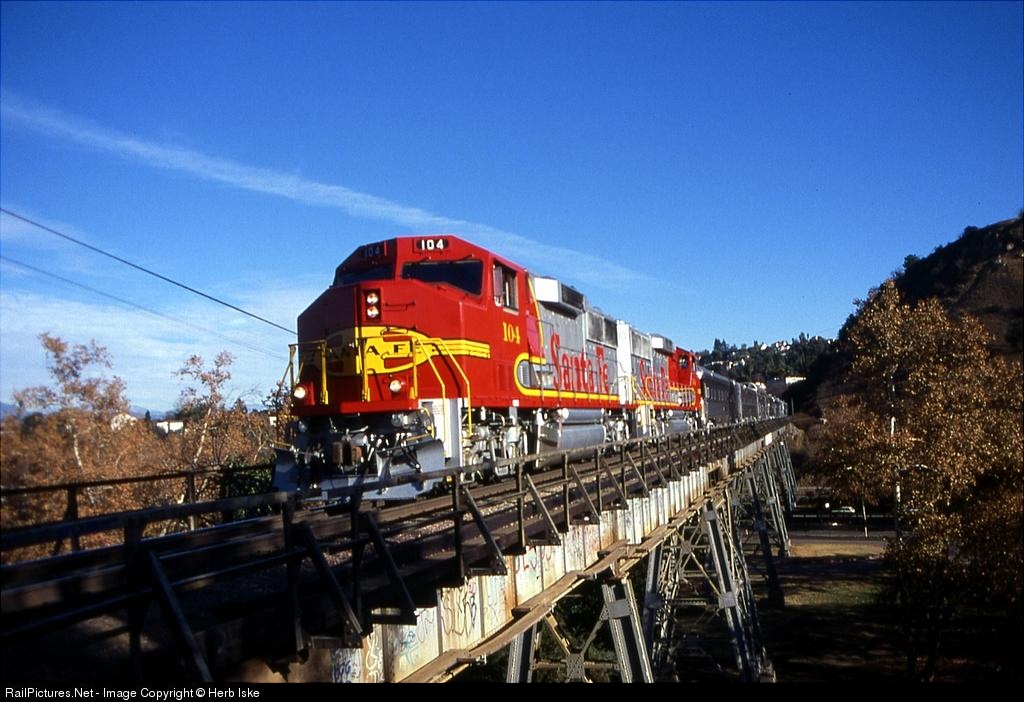 RailPictures.Net Photo: ATSF 104 Atchison, Topeka & Santa Fe (ATSF) EMD GP60M at Highland Park, California by Herb Iske