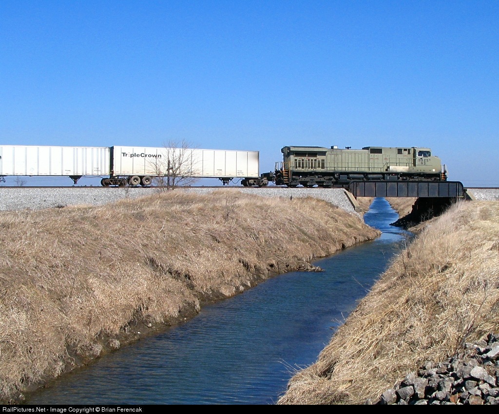 A primed NS unit pulls a long string of roadrailers east over the East Lake Fork Creek, minutes away from Tolono Junction.