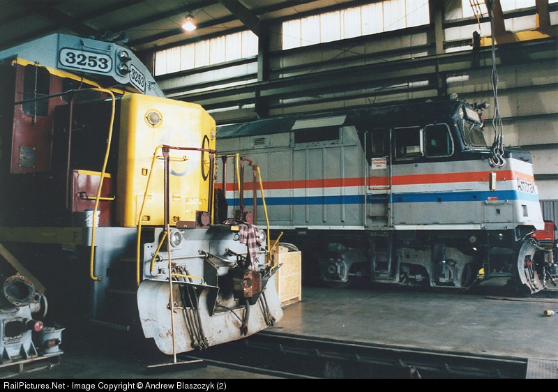 | OHCR 3253 and AMTK 280 spend some time together in the shop building. Luckily the last rays of sun were peaking through the clouds and an OHCR worker let us take advantage of the light and the rare pairing. |