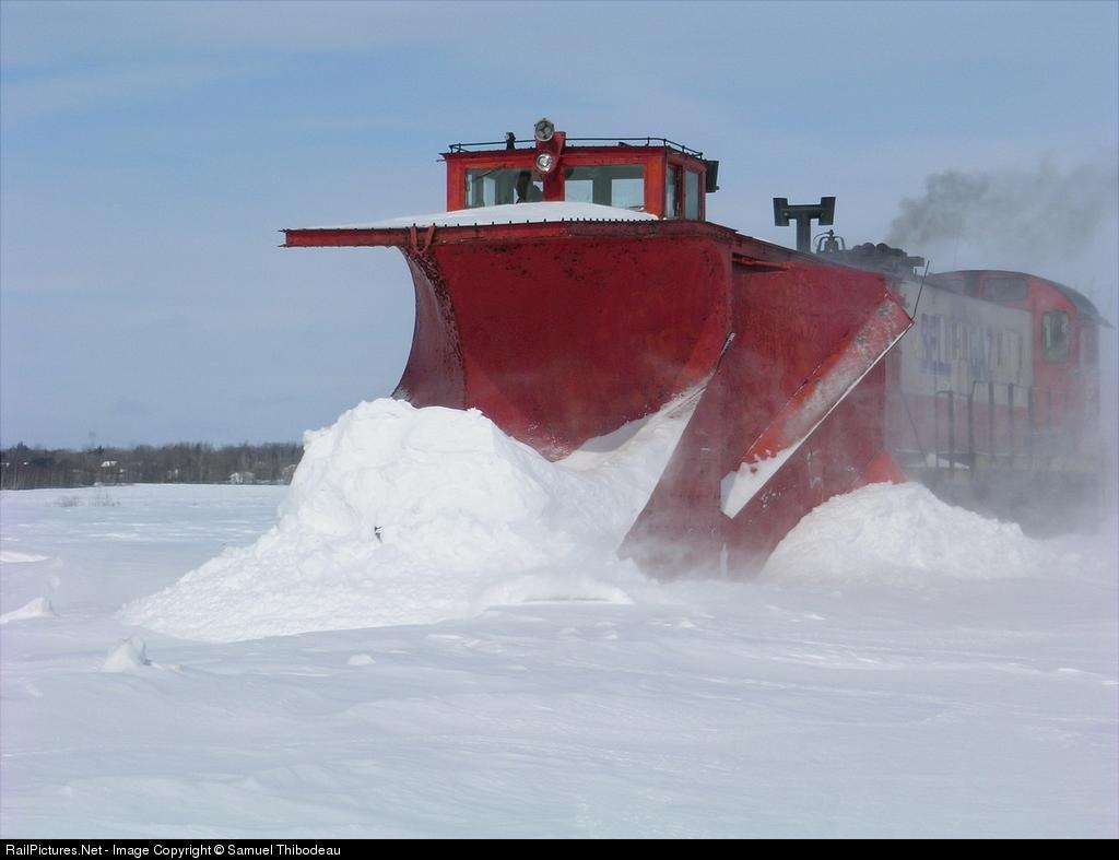 Winter doesn't seem to end in Quebec... as CFL MLW S13 114 easily pushes ex-CN plow 55439 on a very cold and windy day. The CFL operates on an old CP branchline north of Joliette, PQ.