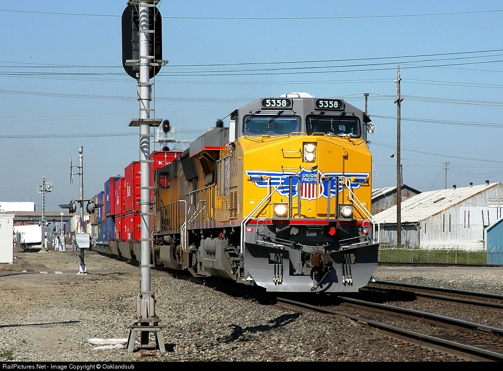 | UP's KAPOA hot shot intermodal coming through Stockton, CA, with brand new GEVO UP 5358 |
