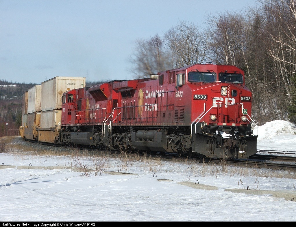 | CP #106-CP 8633, 9112, intermodal, 16 t/e autoracks @ 15:05 |