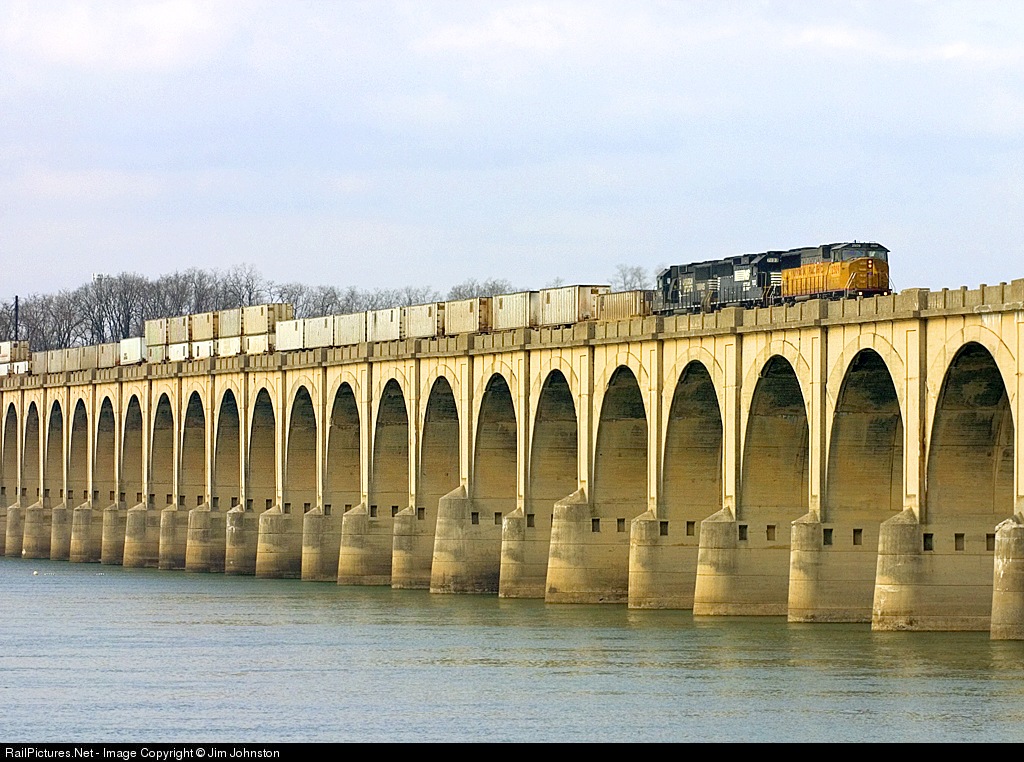 Early morning UP power leads NS 24T across the ex-Reading Bridge north into Harrisburg.