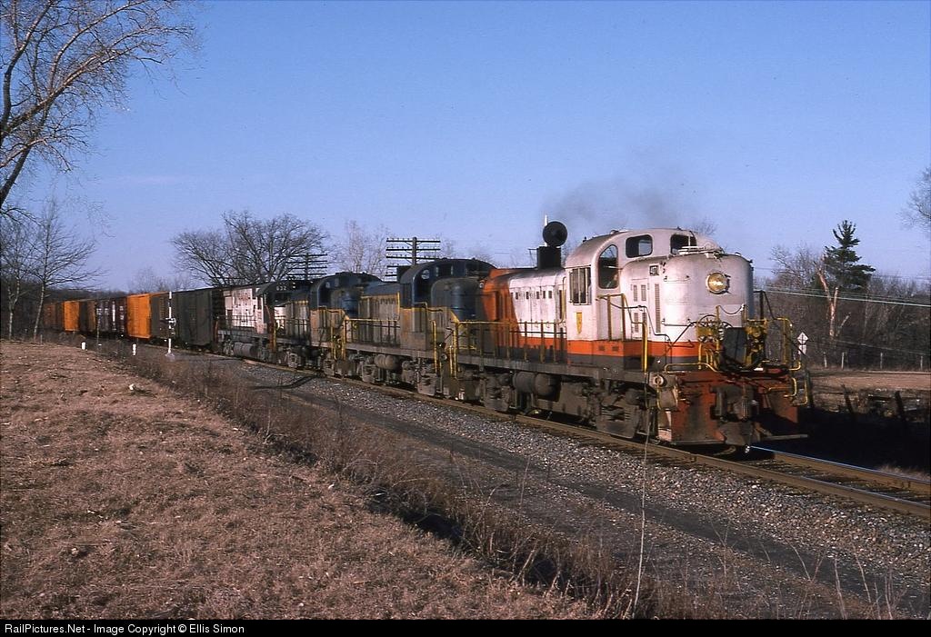 RS-3 in Providence & Worcester colors leads an all-Alco lashup. Fourth unit is a Lehigh Valley "snowbird" C-628