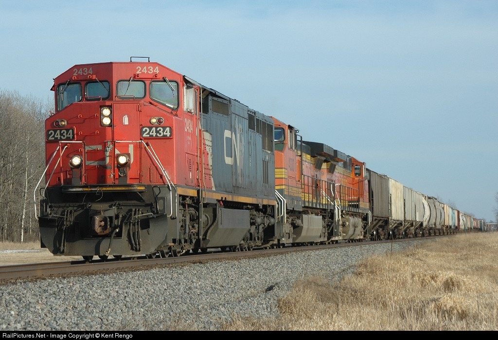 RailPictures.Net Photo: CN 2434 Canadian National Railway GE C40-8M (Dash 8-40CM) at Owen, Wisconsin by Kent Rengo