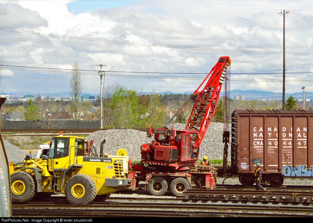 RailPictures.Net Photo: CN 404447 Canadian National Railway CN Crane and Box Car at Levis, Quebec, Canada by lester zmudzinski