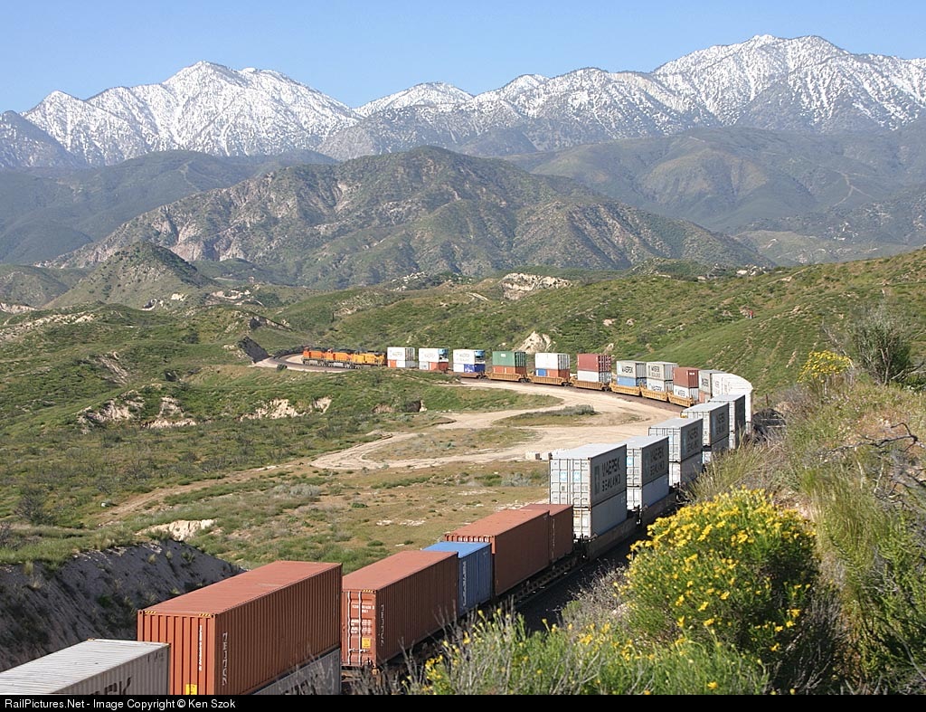 BNSF 4067 leads a stack train down the south track on a beautiful spring morning in the Pass.